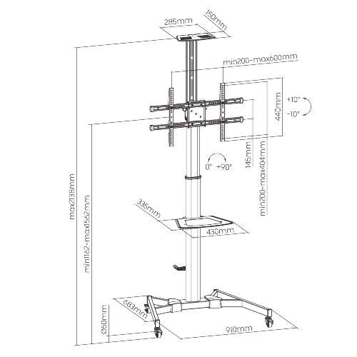จุดเด่นผลิตภัณฑ์: MT-F8500 ขาตั้งทีวีชนิดตั้งพื้นแบบมีล้อ