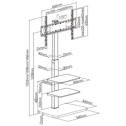 MT-F8600 เป็นขาแขวนตั้งพื้นที่ดีไซน์เพื่อเน้นความแข็งแรงและความสวยงาม สามารถรองรับจอภาพสูงสุดที่ระดับ 75 นิ้ว และรองรับตามมาตราฐาน VESA ตั้งแต่ 200×200 ถึง 600×400 มม. มาพร้อมชั้นวาง 2 ชั้น สามารถประยุกต์ใช้งานได้หลากหลาย เหมาะกับงานที่เน้นความสวยงามและแข็งแรง ใช้งานที่หลากหลาย ทั้งในบ้าน , สำนักงาน , ร้านค้า , สถานศึกษา หรือ fitness