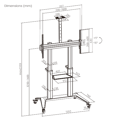 Universal Floor Standing 55″- 120″ TV with a 140 kg