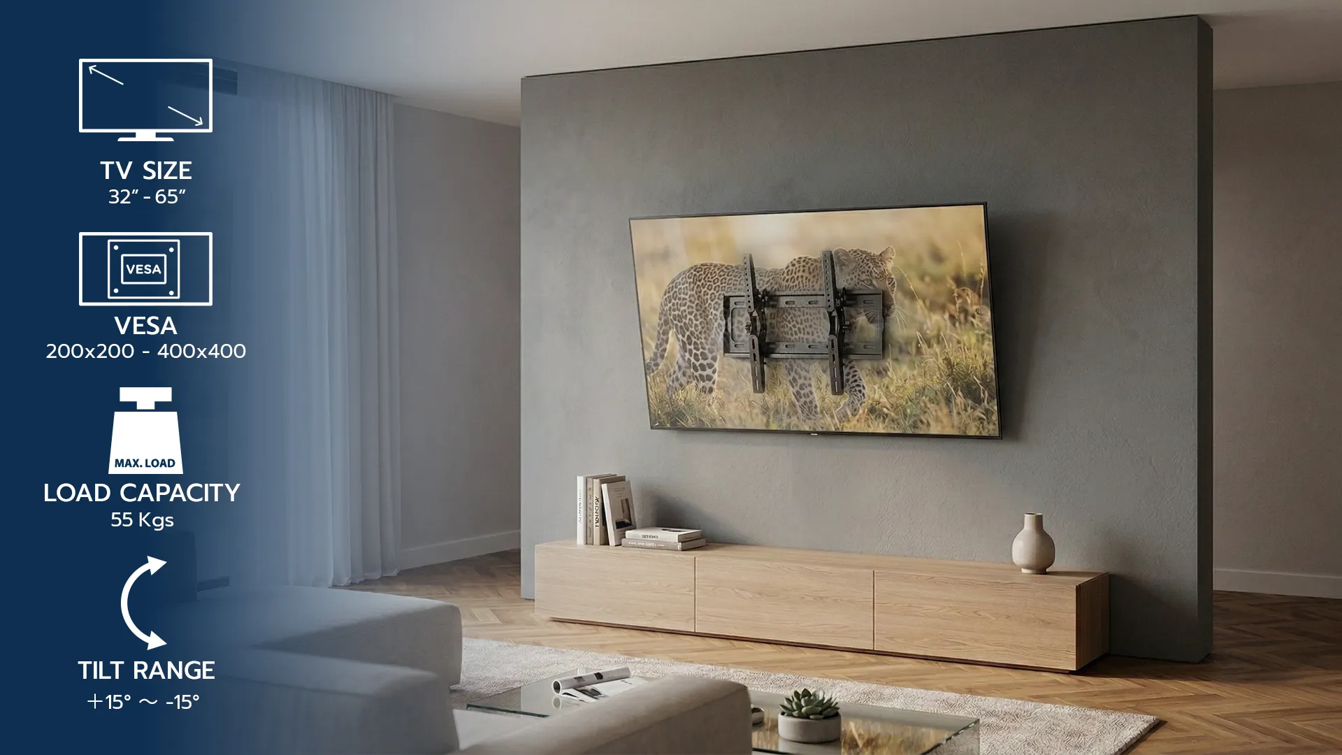 Universal Tilting Wall Mount 32″- 65″ TV with a 55 kg
